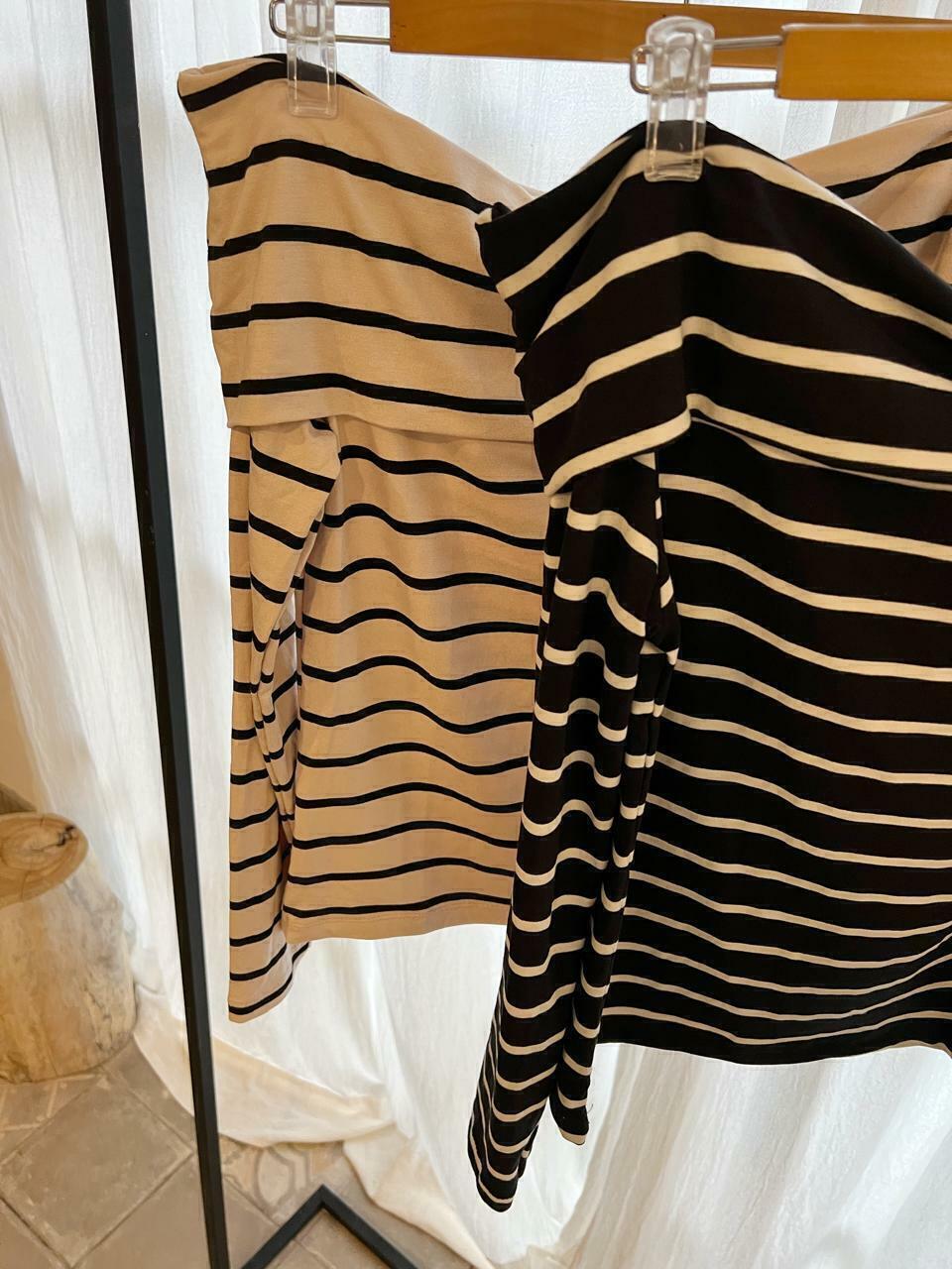 Remera en género Modal de seda, calidad suprema, cuello bote éste deja el cuello despejado y se extiende hacia los hombro. Talle Único L/XL.